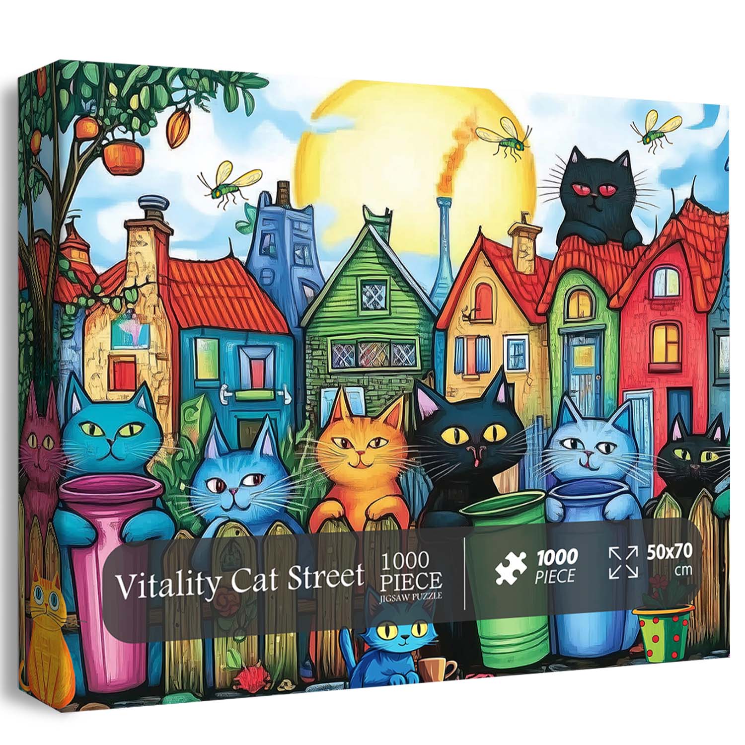 1*Colorful Cat Street Jigsaw Puzzle 1000 Pieces