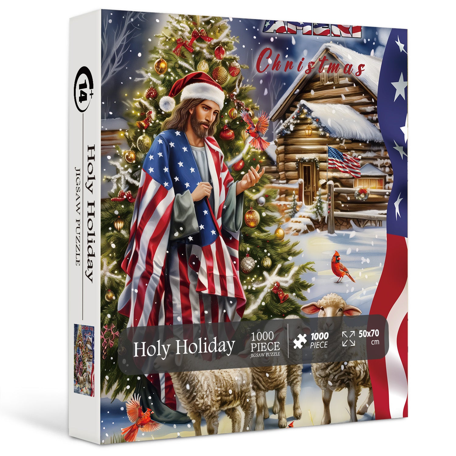🌟🎄 Sumérgete en una escena de reverencia y unidad con nuestro rompecabezas de "santo santo". Experimente la descripción sagrada de Jesús, un cordero suave y un paisaje nevado, donde la bandera estadounidense está sutilmente integrada. Este rompecabezas encarna la fe, la paz y la armonía, ofreciendo una narración conmovedora de amor y esperanza para la temporada festiva.
