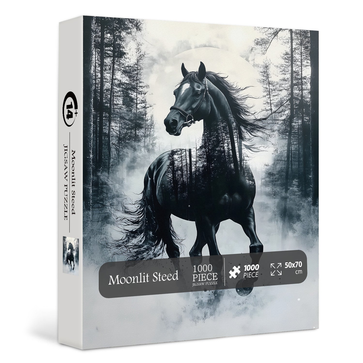 Chaque pièce est fabriquée à partir de carton recyclé de première qualité avec une finition mate profonde, conçue pour un ajustement parfait et une surface qui rehausse les tons maussades et atmosphériques. Nous utilisons des encres haute définition résistantes à la décoloration pour capturer les dégradés subtils de la brume, les détails musclés du cheval, l'écorce texturée des arbres et l'interaction obsédante de la lumière et de l'ombre, garantissant ainsi que l'impact dramatique de la scène reste vif.